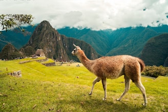 brown llama on green grass field during daytime